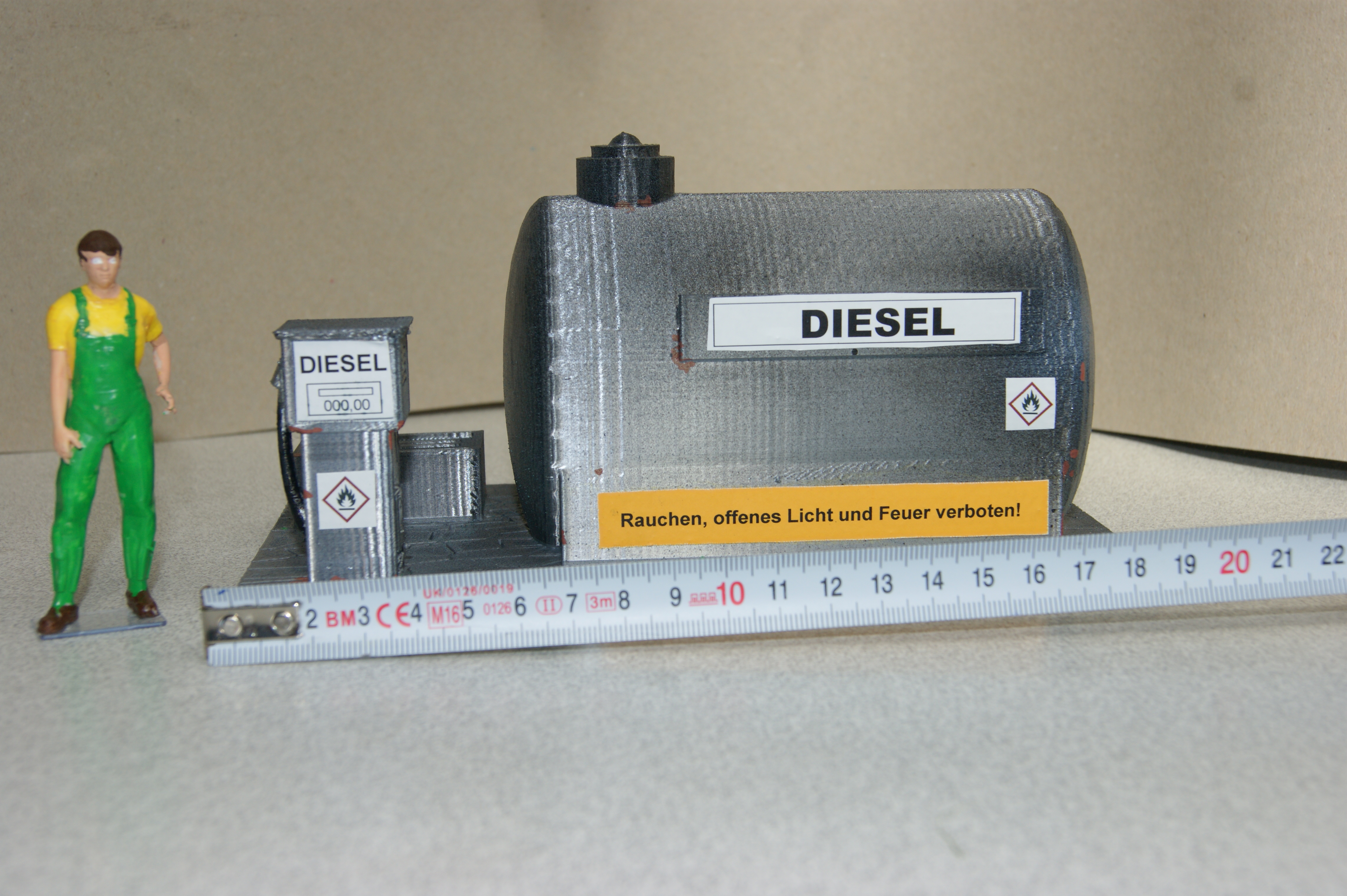 Dieseltankstelle mit Zapfsäule im Design der 70er/80er Jahre.